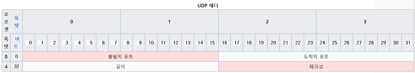 이렇게 보면, TCP에 비해 훨~씬 짧은 패킷 구조를 가지는 것을 알 수 있다.