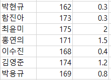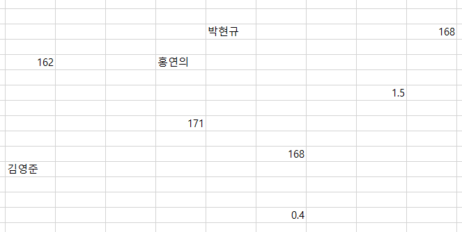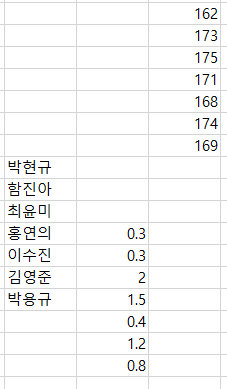 만약 이름, 키, 시력을 저장해야하는데, 엑셀에서 다음과 같이 저장했다고 생각해보자.